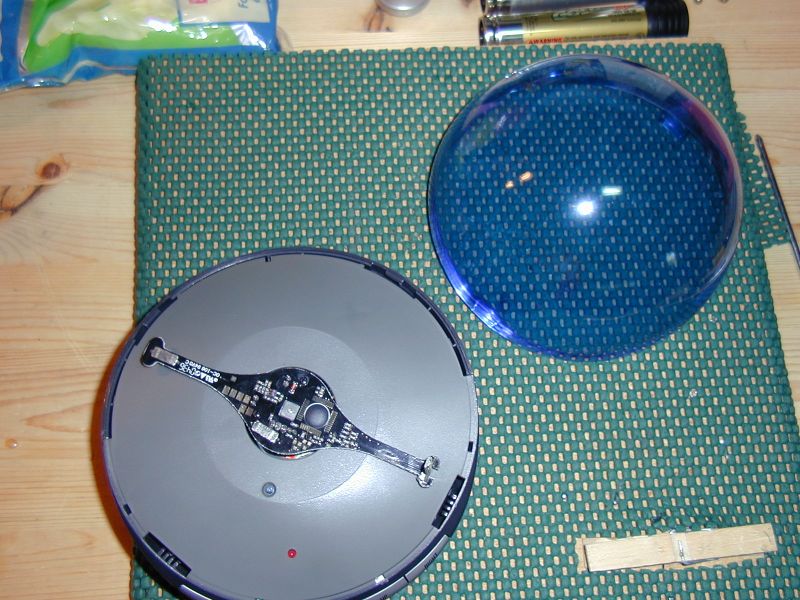 It is possible now to remove the plastic protection, attached by the 4 screws on the base (we already removed them).It's enough to gently lever where the dome was inserted in order to remove the cover.
